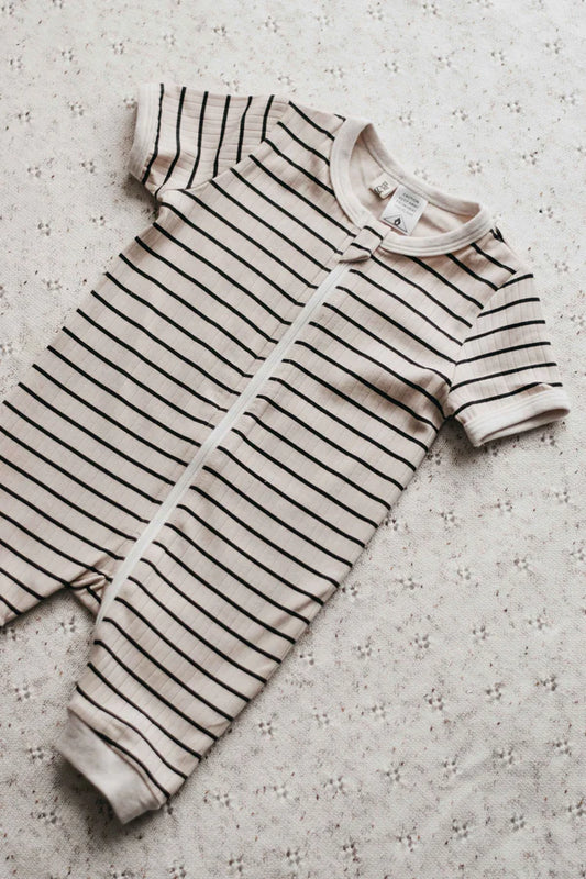 CHARCOAL STRIPE SUMMER ZIPSUIT