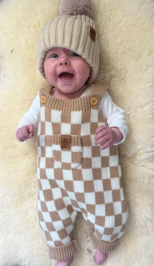 HAND KNITTED BABY BEANIE - FAWN - 0-18 MONTHS