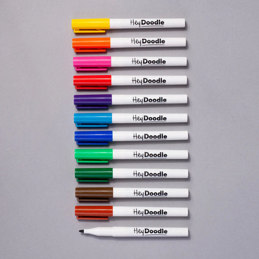 HEYDOODLE FINE TIP MARKERS - 12 PACK