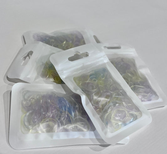 MINI SEAMLESS ELASTIC HAIR BANDS - CLEAR, PINK & YELLOW ASSORTED
